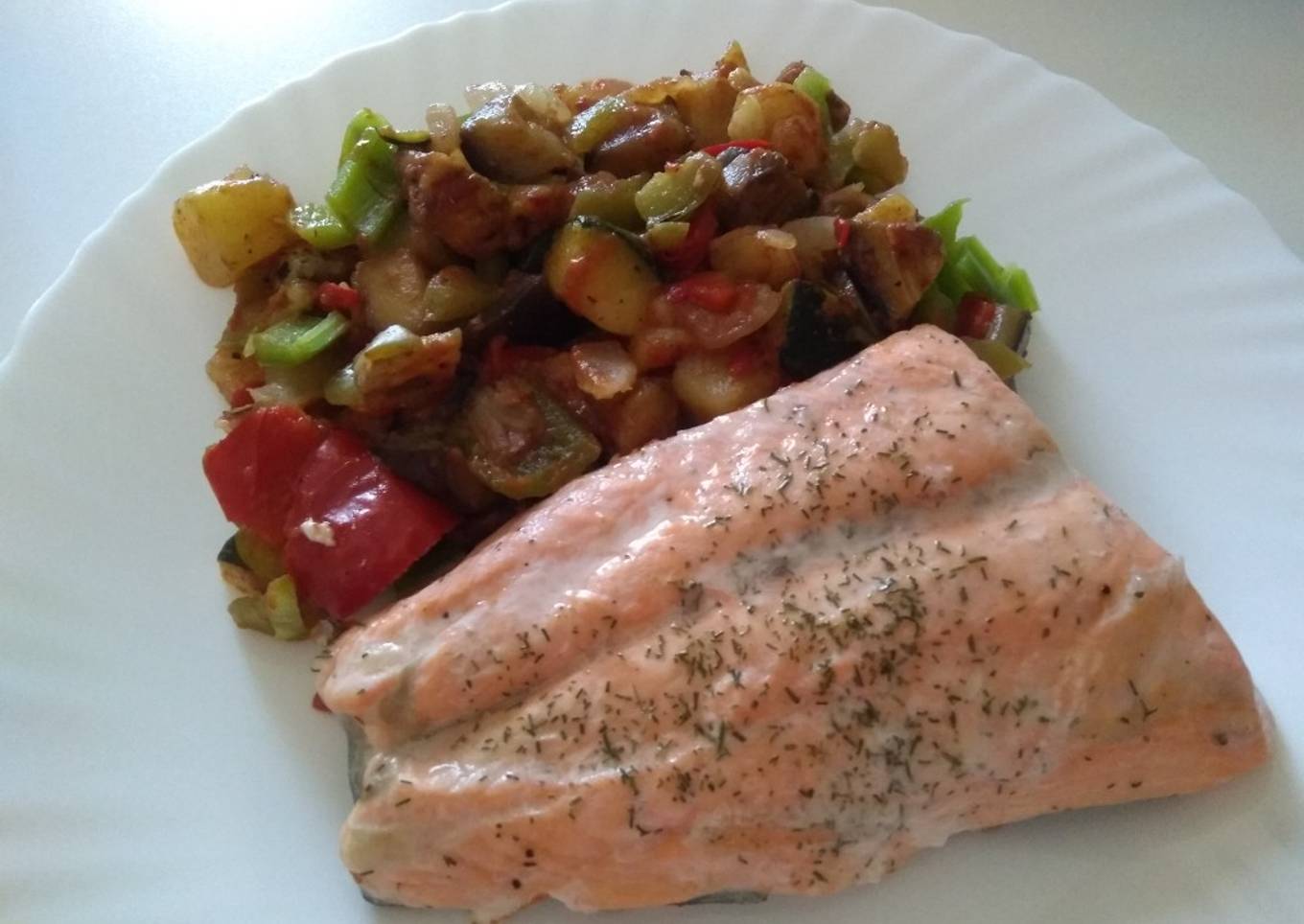 Salmón con verduras al vapor (Thermomix)
