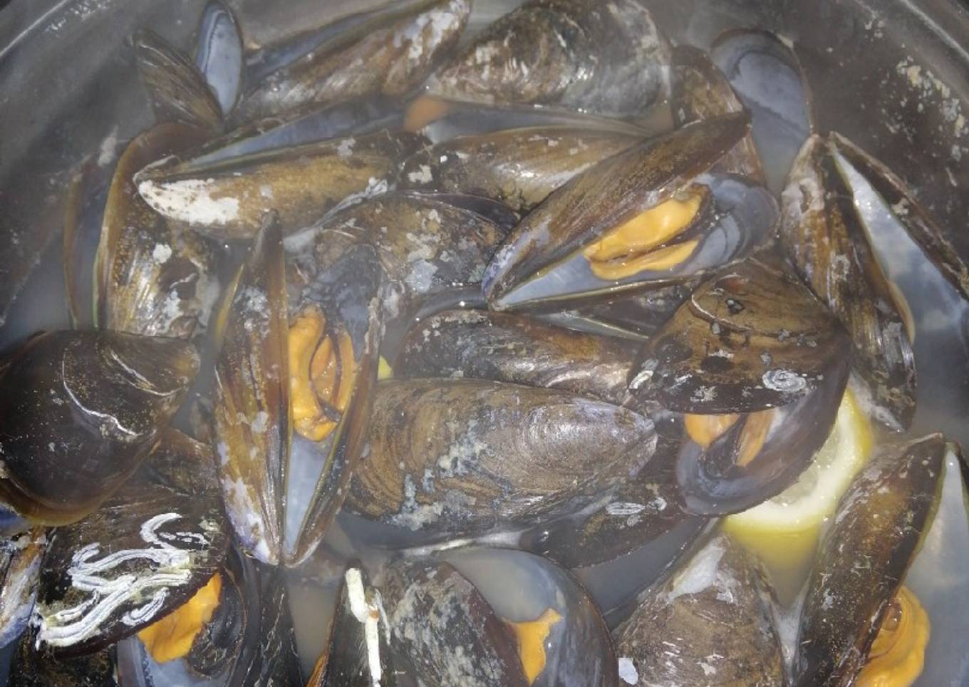 - Pone la olla a fuego medio y la tapas, cuando vea que los mejillones están abierto, ya están listos!!!!!