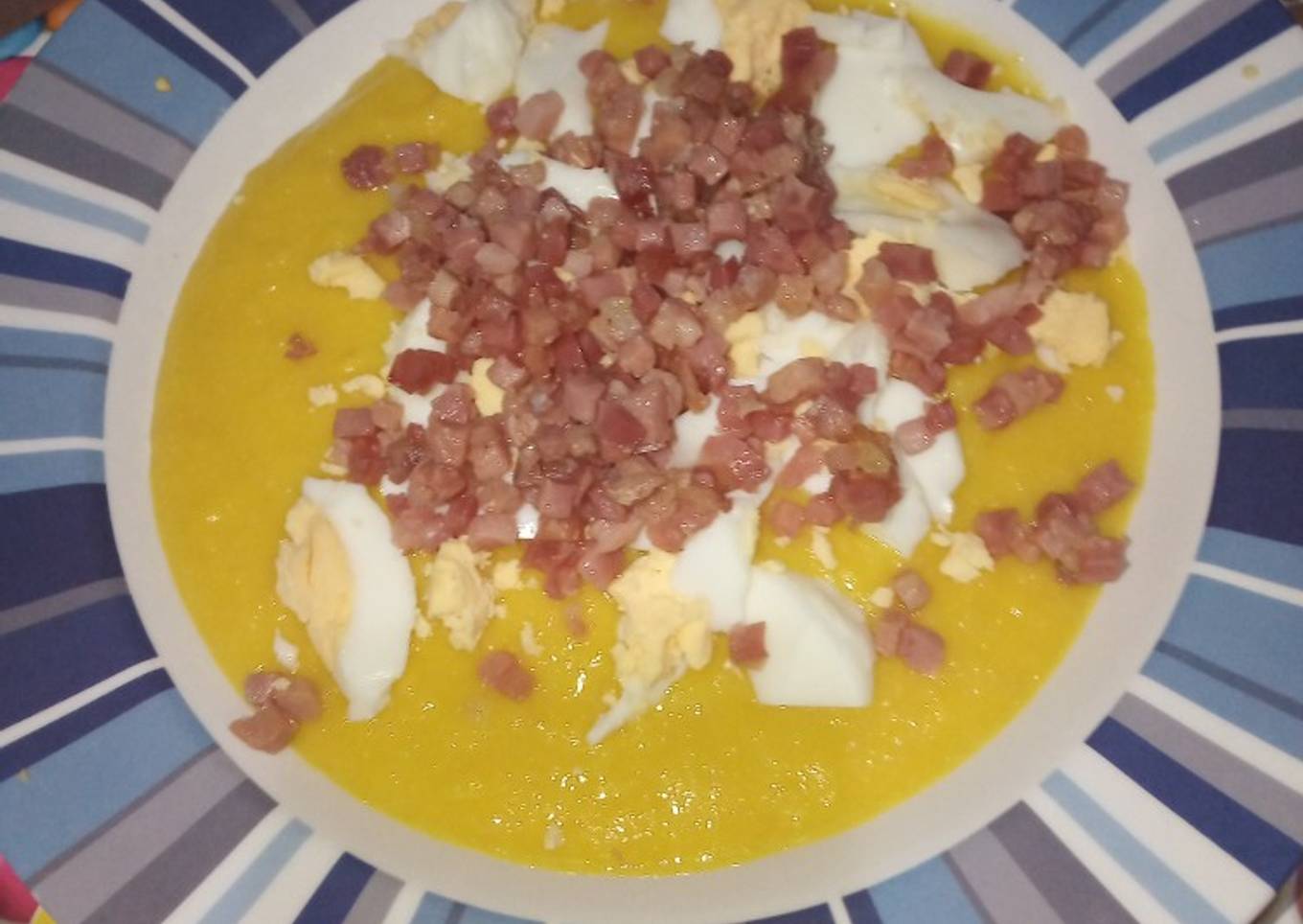 - Lo metemos en la nevera para que esté bien fresquito antes de consumir, a la hora de consumir lo ponemos en platos y decoramos con jamón en taquitos y huevo. También podéis poner mango en taquitos para decorar, delicioso!!