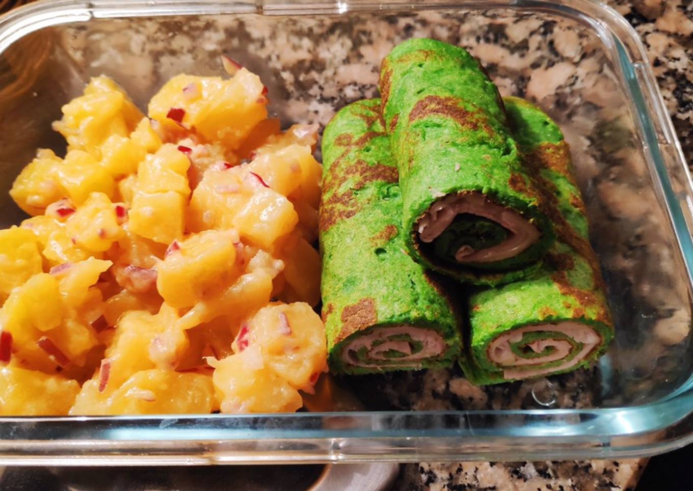 Instructions to make to make Ensalada templada de patata con rollitos de espinacas