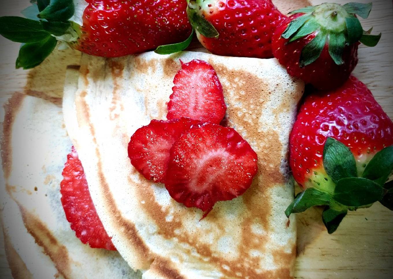 - Cuando la crepe este hechita por las dos caras unta el chocolate, pon los fresones en lĂĄminas, cuadraditos o como mĂĄs te guste y cierra tu crepe en triĂĄngulo.