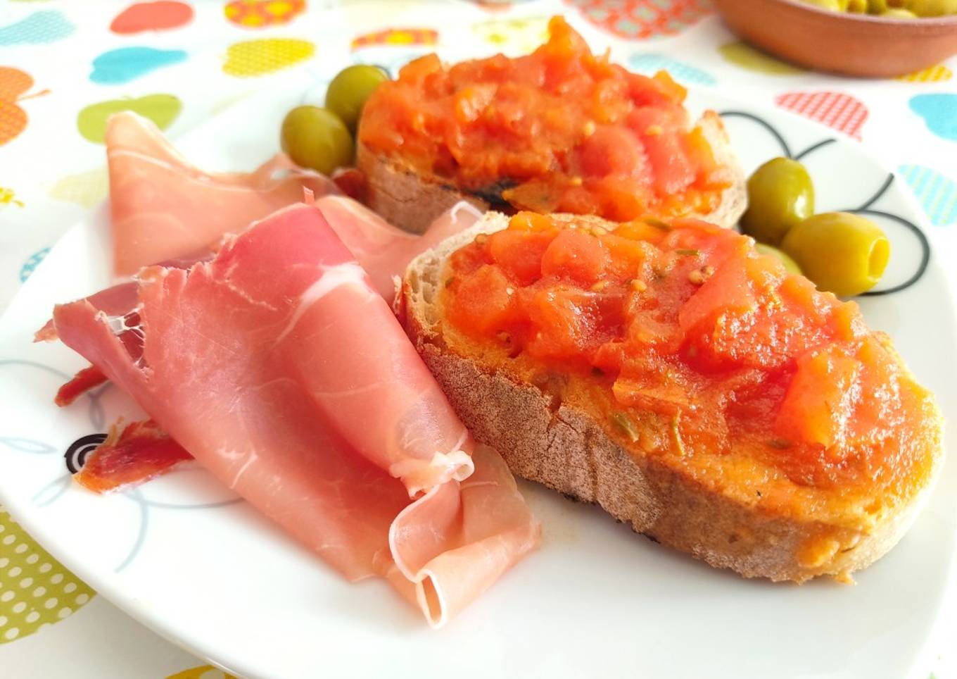 - Sobre unas tostas de un buen pan y unas lonchas de jamón serrano 🤤